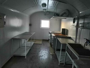 Внутренняя отделка столовых выполняется как для влажных помещений: стены и потолок - из оцинкованного профлиста (в том числе с полимерным покрытием), пол – рифленый стальной лист или автолин.— Вагон-дома подходят для работы в условиях Крайнего Севера
